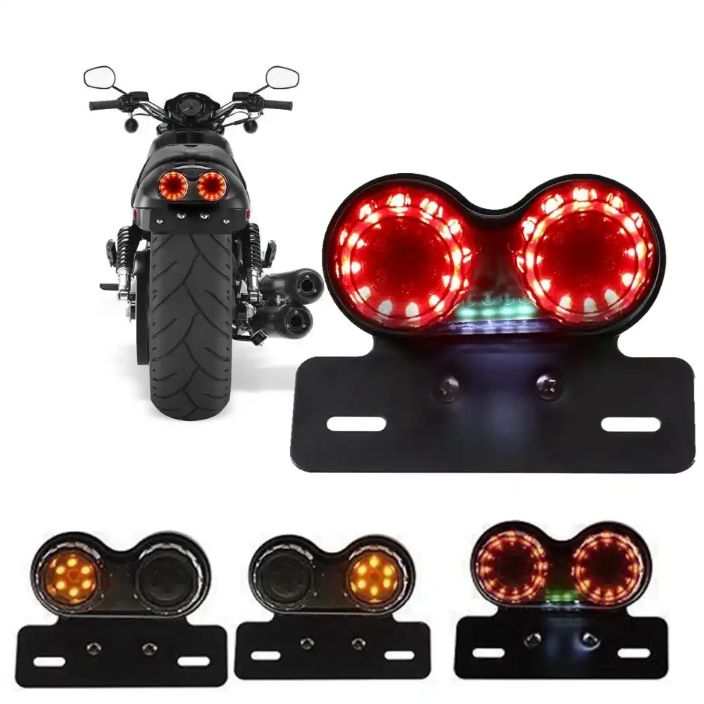 Universal 40w 40 Led Twin Dual Cat Eye Motorcycle Taillight Integrated Motor Turn Signals Brake Stop Lamp With License License Plate Led Tail Lights Tail Light